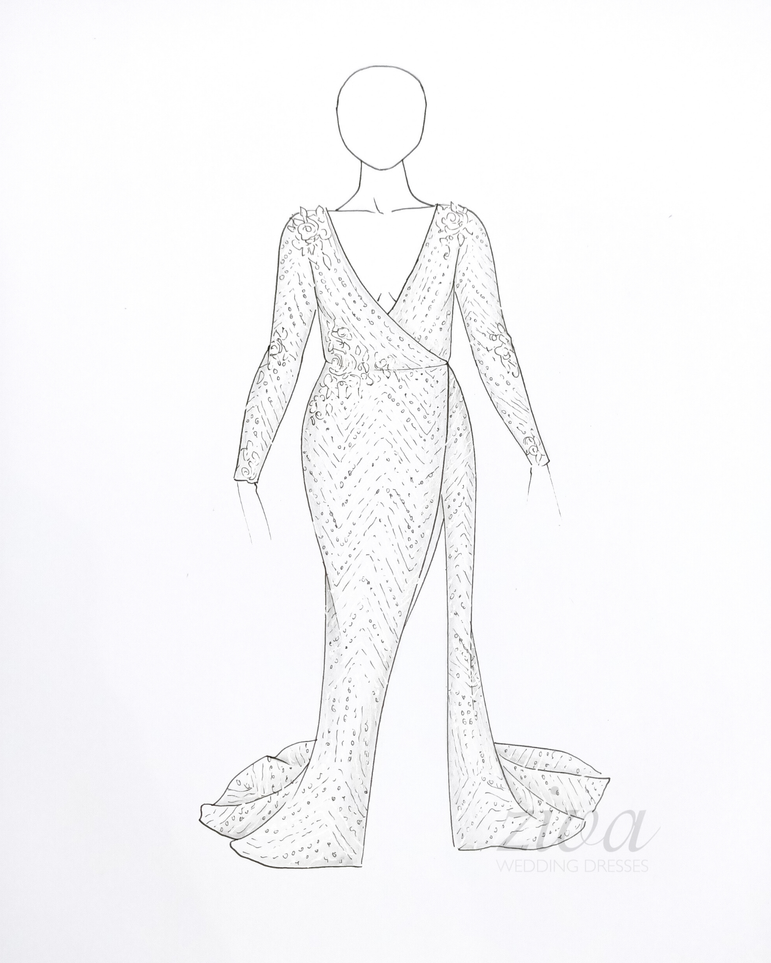 To secure your order, a deposit is required, it’s usually around one third of the cost of your wedding dress. Payments can be made via bank transfer, Stripe, or PayPal. If you have selected a sketch (highly recommended) our artist will begin creating your custom sketch. You’ll have the opportunity to review sketch drafts before finalising the final look.