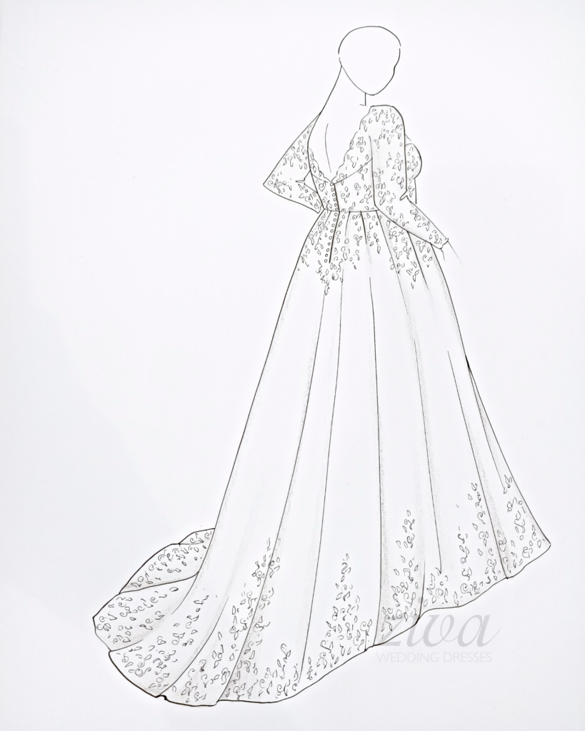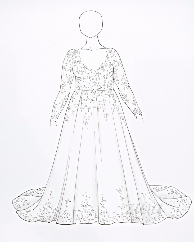 This timeless gown was designed with comfort, elegance, and effortless beauty in mind. Featuring a softly structured bodice with a flattering V-neckline, the dress is finished with delicate lace detailing that extends into sheer long sleeves, creating a romantic and feminine silhouette.